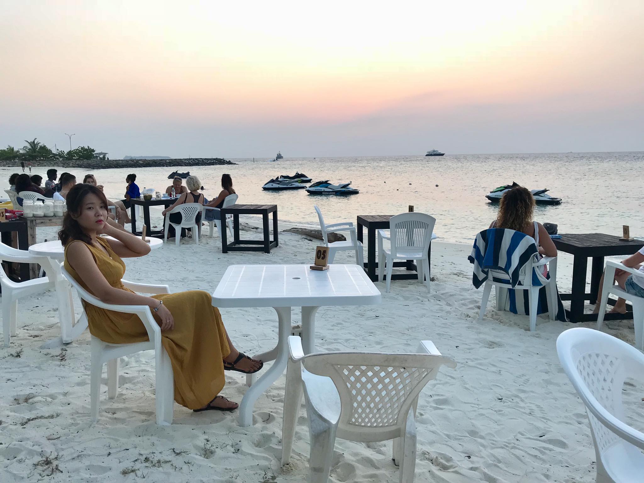 Chiều tối thì cả đoàn quay lại đảo dân sinh Maafushi, 2 vợ chồng tự lang thang khám phá đảo gần như lớn nhất Maldives và thưởng thức BBQ ngoài bãi biển cùng mọi người.