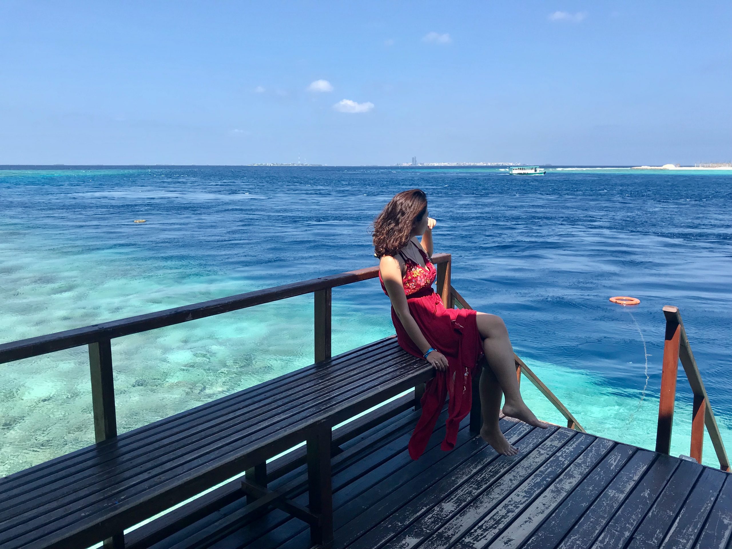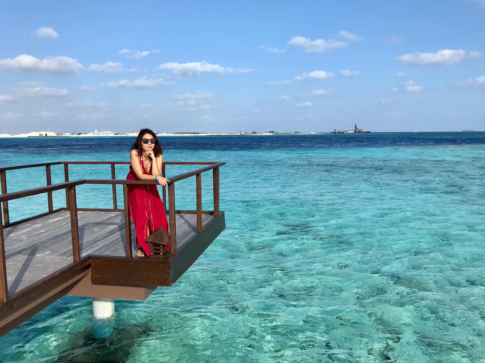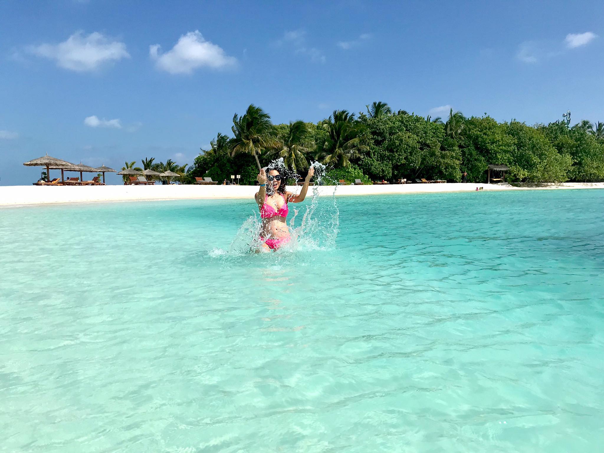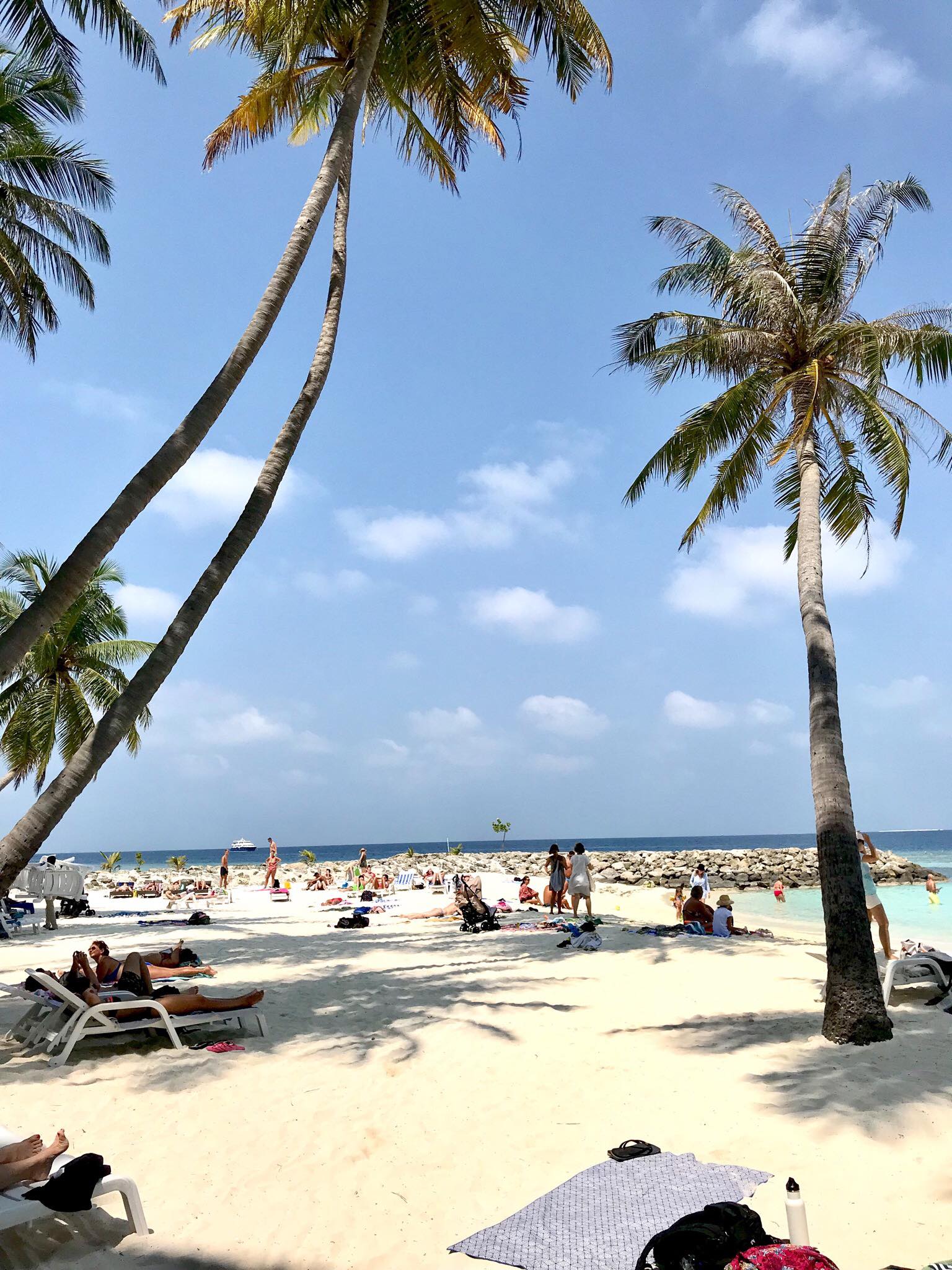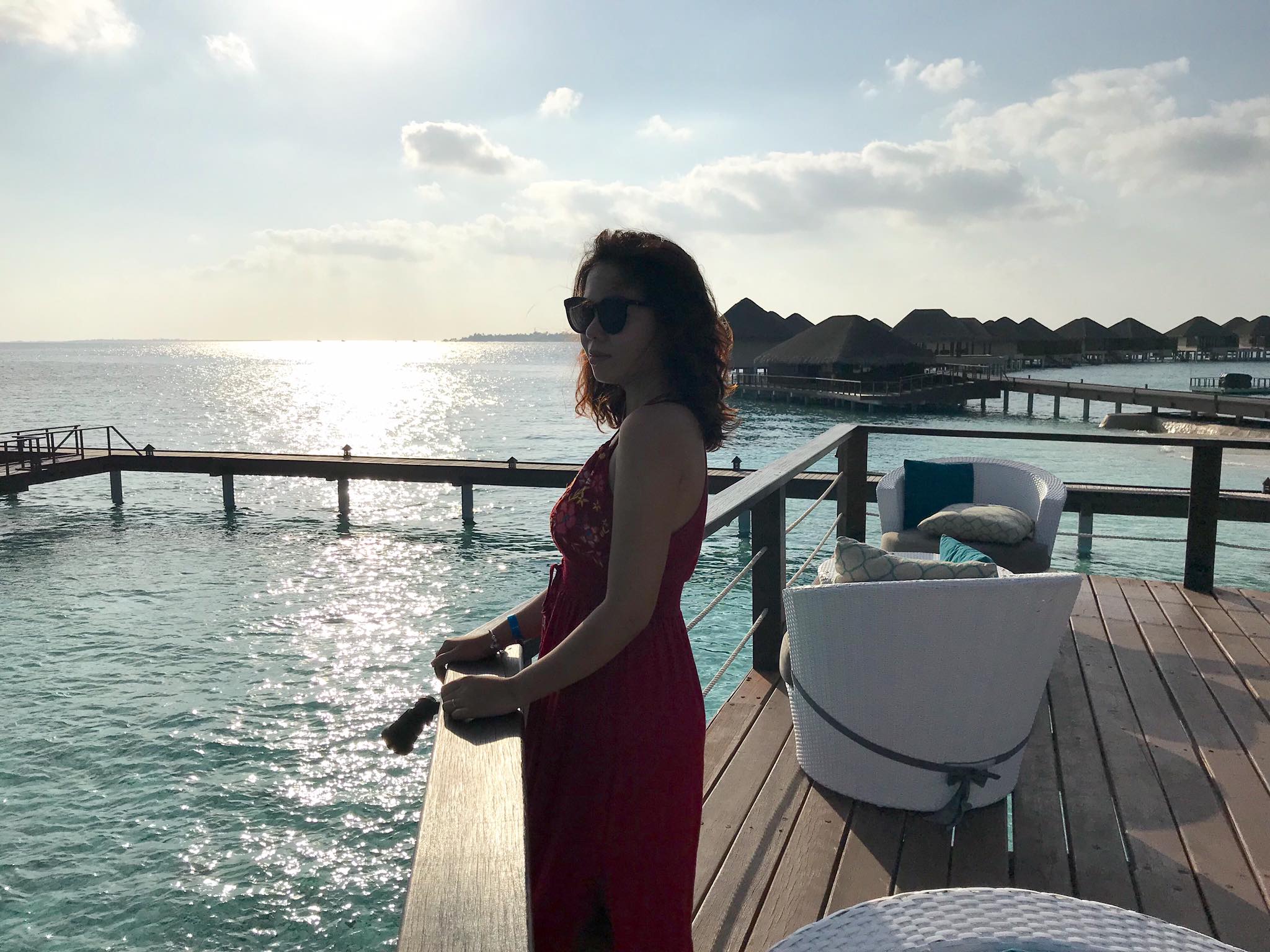 Nếu đến Maldives, bạn hãy đến thăm quan 1 ngày tại 1 resort 5* (private island) để cảm nhận sự khác biệt nhé. Nhóm mình chọn Adaaran Prestige Vadoo vì khoảng cách không quá xa nên di chuyển cũng thuận tiện. Tại đây có rất nhiều địa điểm được bố trí dọc bãi biển quanh khu vực quầy bar hình con thuyền, vừa phơi nắng vừa uống bia rượu, nước trái cây miễn phí.