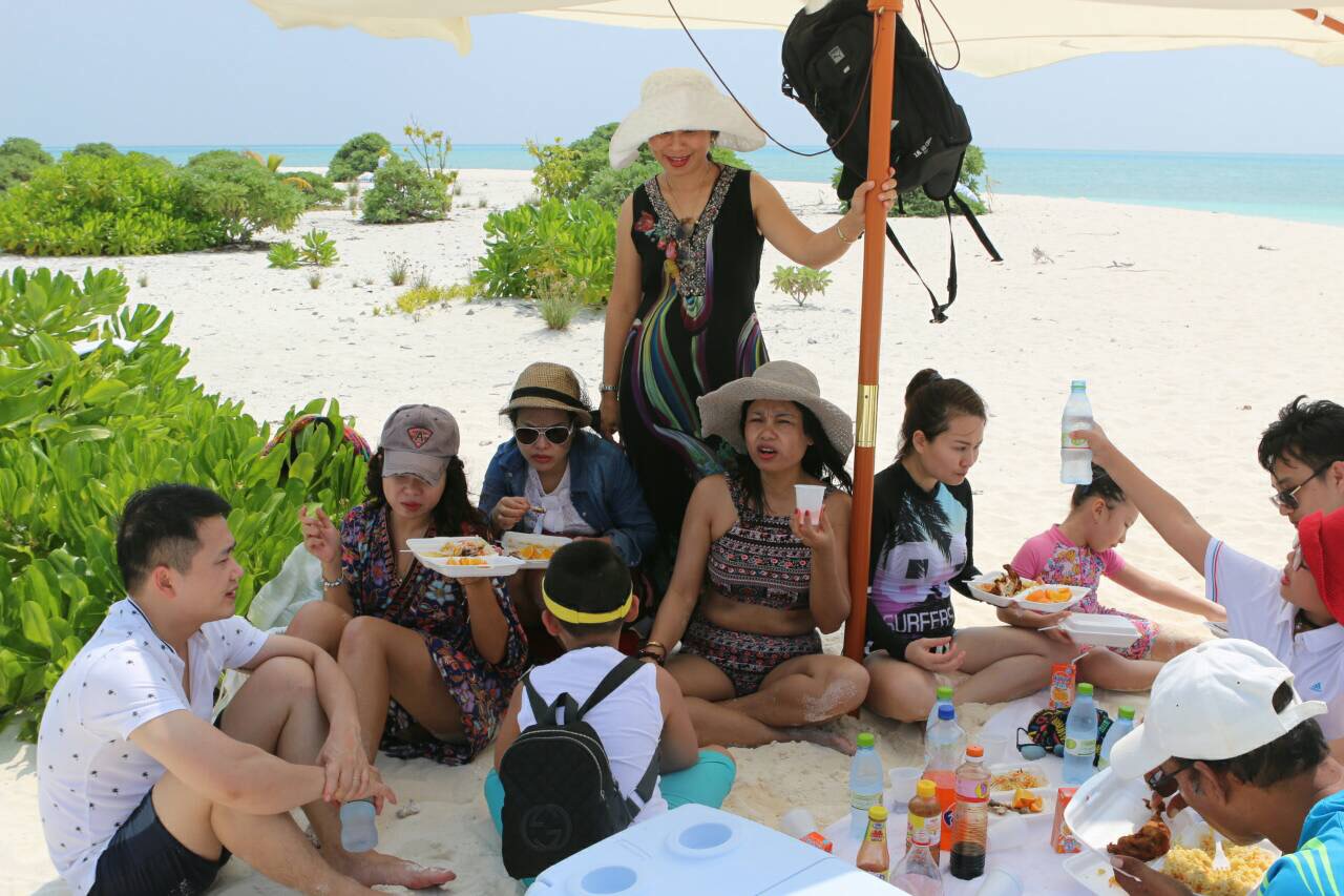 Chắc hẳn ai cũng đã từng nghe nói đến đặc trưng của Maldives là Sandbank, những cồn cát trắng mịn nằm rải rác khắp đảo. Cát trắng mịn, biển xanh trong vắt đẹp mê hồn. Và được cắm trại ăn BBQ tại đây thì còn gì bằng nữa nhỉ. Bạn host nhà bọn mình ở đã tổ chức chương trình rất chu đáo. Các bạn Hướng dẫn Local rất đáng yêu, chuyên nghiệp, thân thiện và hỗ trợ hết mình.