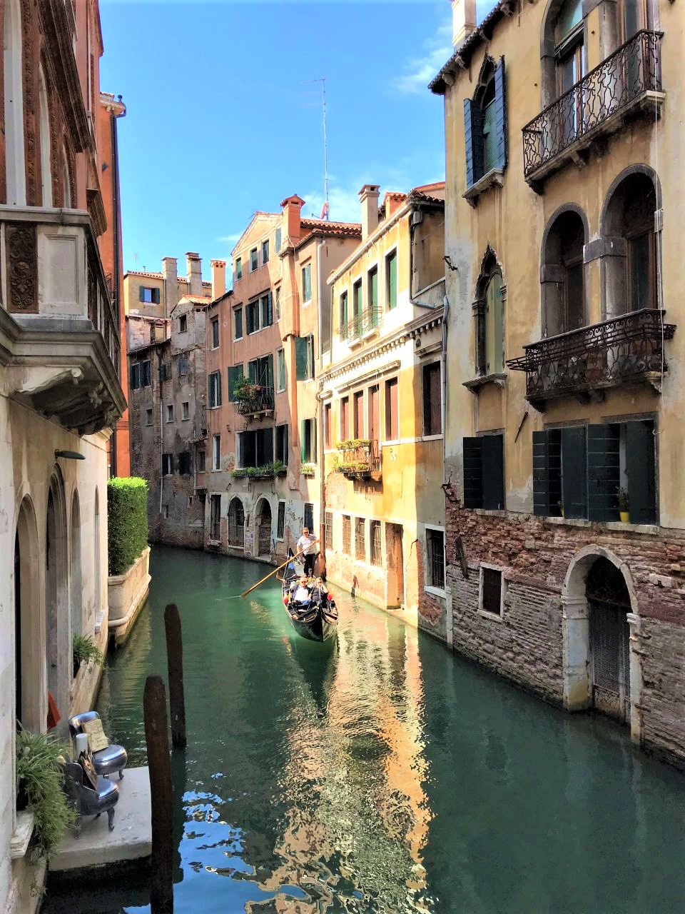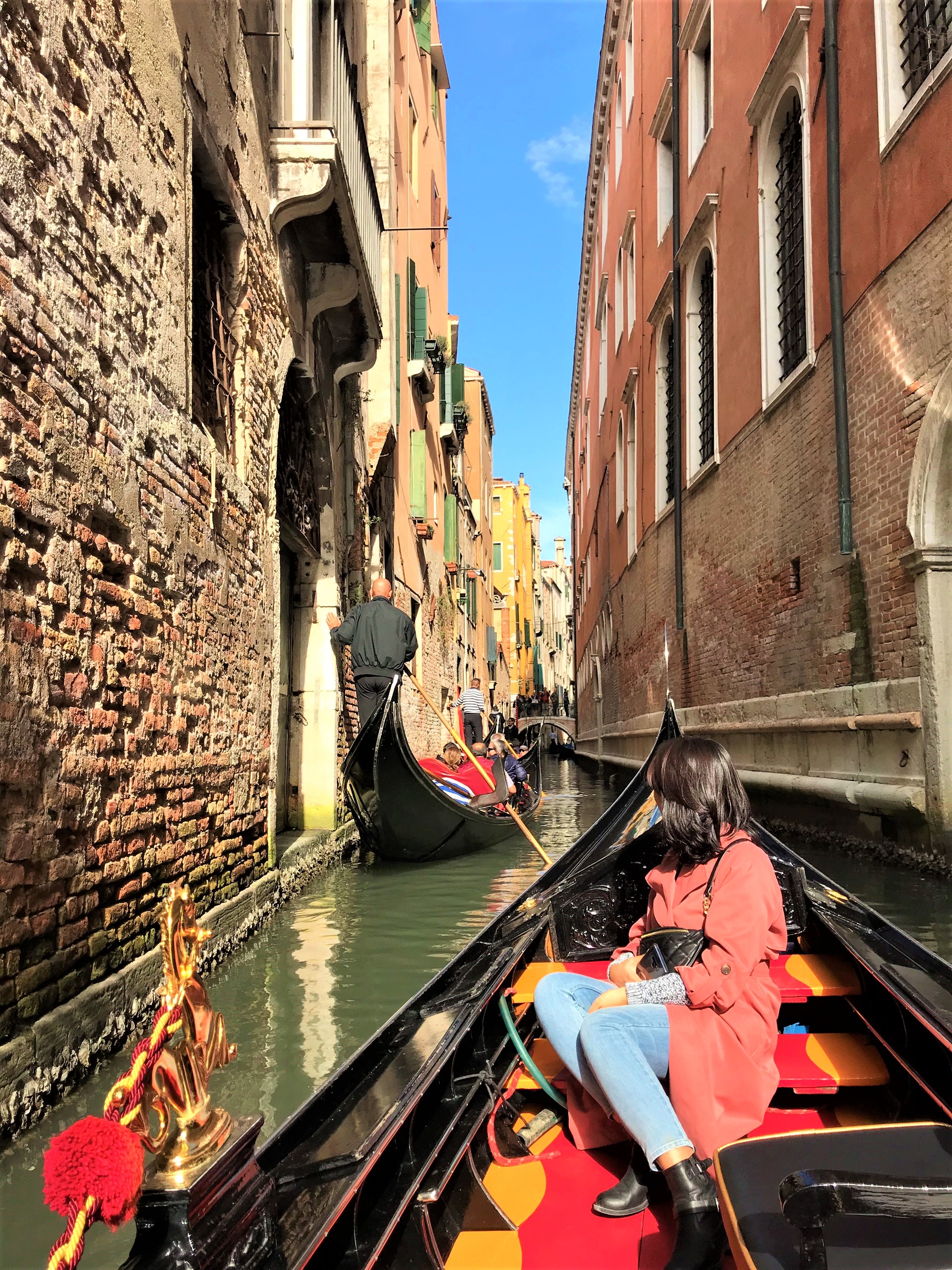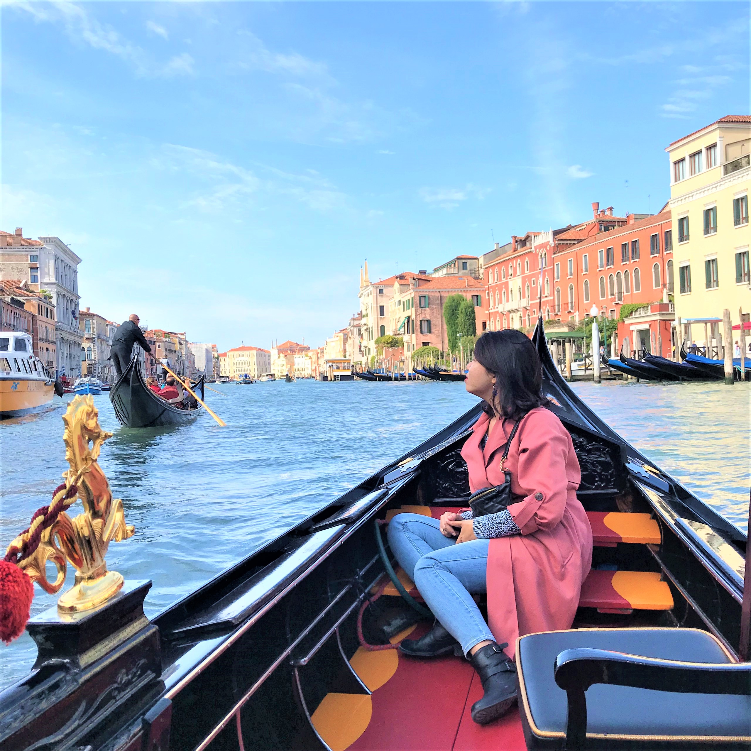 Đến Venice chắc chắn phải thử đi thuyền trên dòng sông, luồn lách qua những con phố nho nhỏ dù giá tiền trên trời luôn €80 cho 30′  nhưng là 1 trải nghiệm đáng để thử. Thuyền có thể chở max 6 người nên nếu đi đông bạn sẽ tiết kiệm hơn vì share cho nhau còn nhà mình có 2 người mà ko thích đi cùng người lạ nên chịu mắc 1 xíu. Bù lại, vì đi có 2 người nên có nhiều ảnh đẹp trên thuyền, ko bị vướng người (AQ 1 tí ạ )