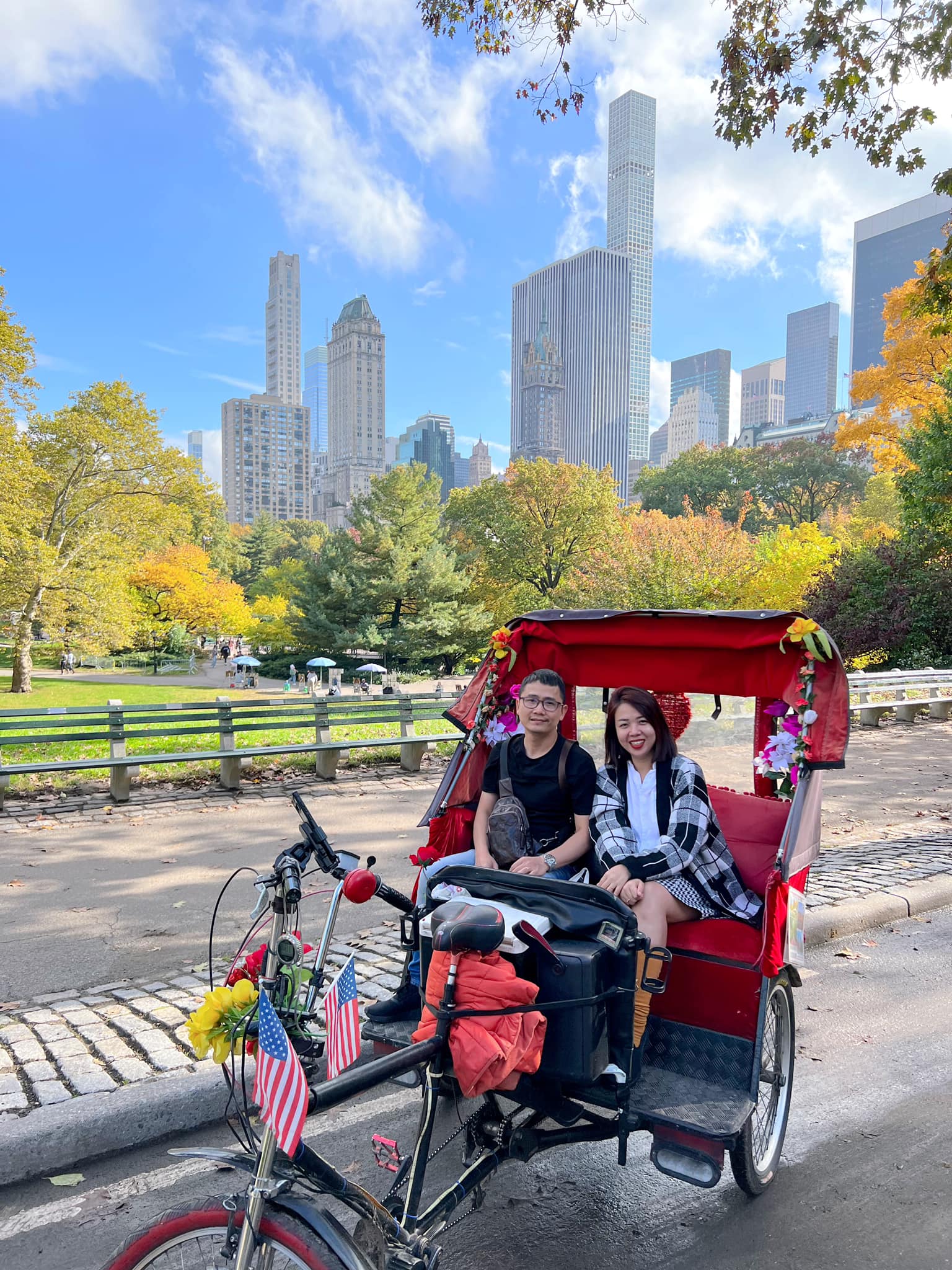Central Park rất rộng lớn và để đi xe đạp hết đc cái park này chắc cũng phải mất 2h. Vợ chồng mình ban đầu định thuê xe đạp đấy cơ mà thấy lỉnh kỉnh nhiều đồ quá nên lại tặc lưỡi thuê xe ngựa. 100$ mà đi được có 45’ thôi á. Nhưng được cái ông đánh xe ngựa vừa đi vừa giới thiệu chỗ này chỗ kia và còn chụp ảnh rất có tâm nữa nên cũng ok lah.