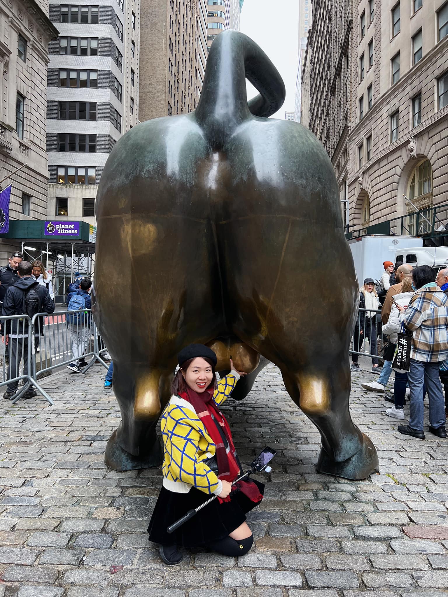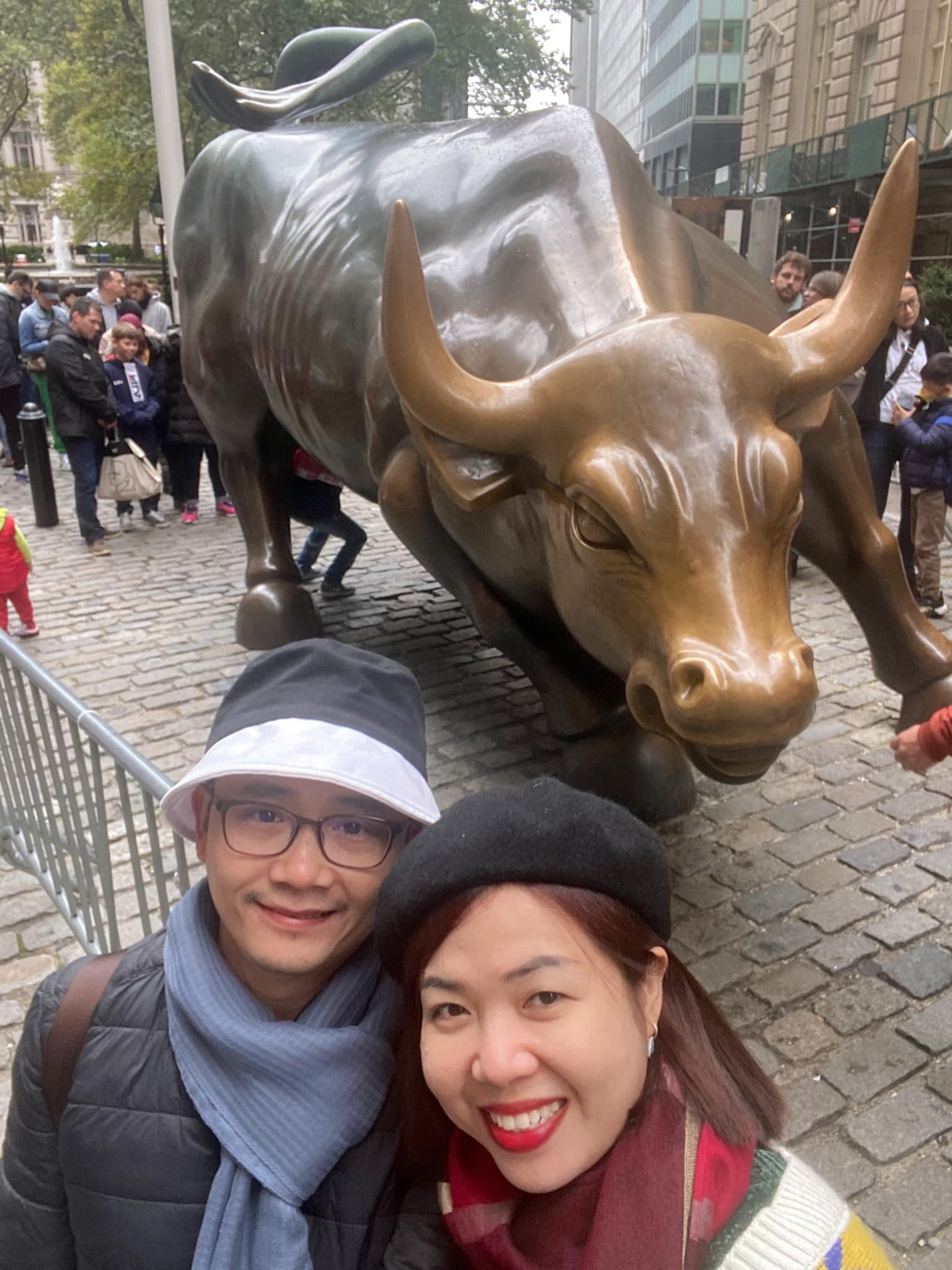 Đã đến đây rồi thì hãy nhớ “Sờ Bi Bò” nha :D. Attraction không thể thiếu khi tới Wallstreet đó. Nhiều người có niềm tin rằng điều đó sẽ mang tới may mắn, đặc biệt cho những người đang trading chứng khoán. Tất nhiên, với trader nhiều năm như chồng mình thì chắc chắn vợ chồng mình phải thực hiện nghi thức này rồi