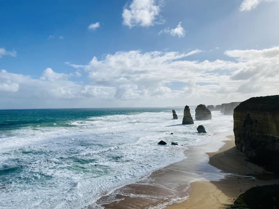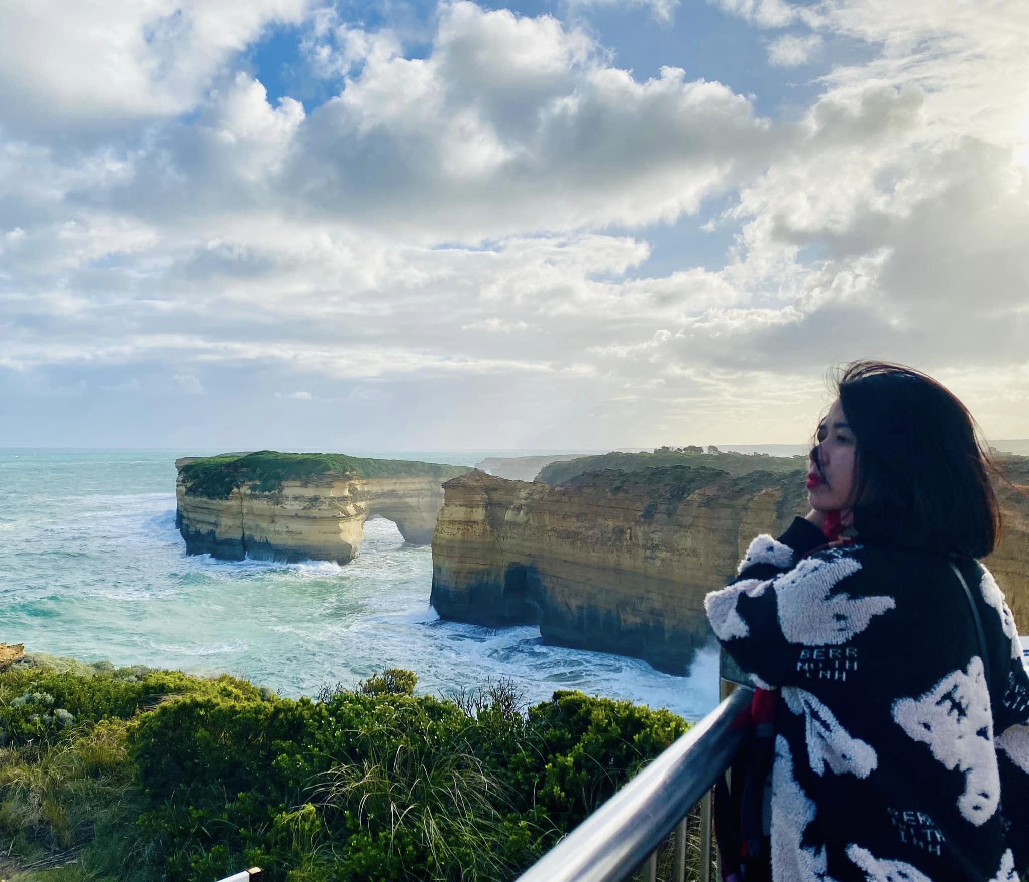 Chúng mình book day tour đi dọc bờ biển Melbourne vào 1 ngày combo nắng mưa thất thường và gió tung óc luôn .