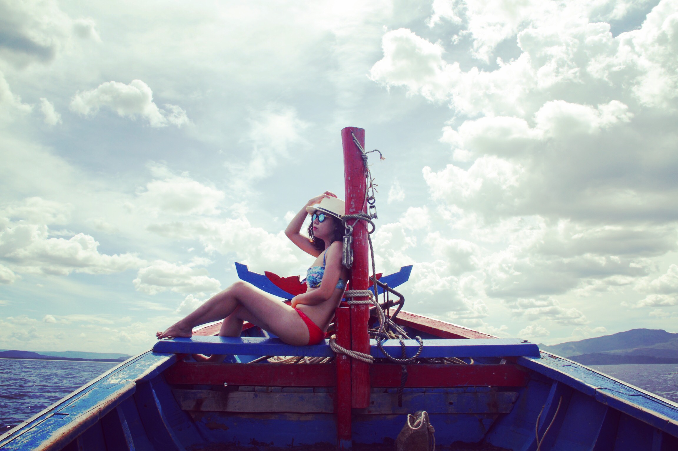 Lênh đênh trên tàu đi đến một bãi biển vắng, chỉ có riêng chúng mình. Lơ đãng phơi nắng trên boong tàu ngắm nhìn làn nước xanh thẫm, để nắng và gió tự do đùa nghịch làn da, mái tóc đều là trải nghiệm đáng để thử.