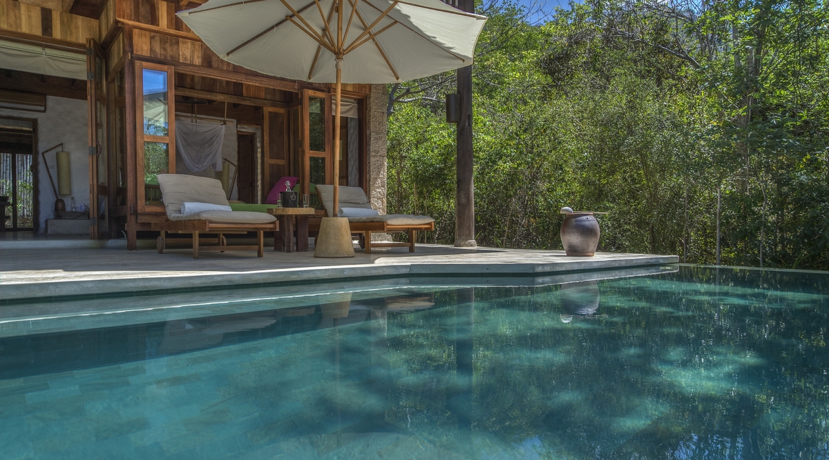 Căn Villa nhà mình ở là Beach Pool Villa với 2 tầng vô cùng rộng rãi và xinh xắn. Dấu ấn của Six Senses là việc dùng các vật liện thân thiện với môi trường và giữ nguyên trạng sự nguyên sơ của rừng núi nhiều nhất có thể.
